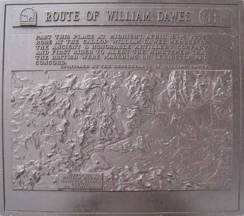 A bronze plaque, commemorating the simultaneous ride of the long-forgotten William Dawes