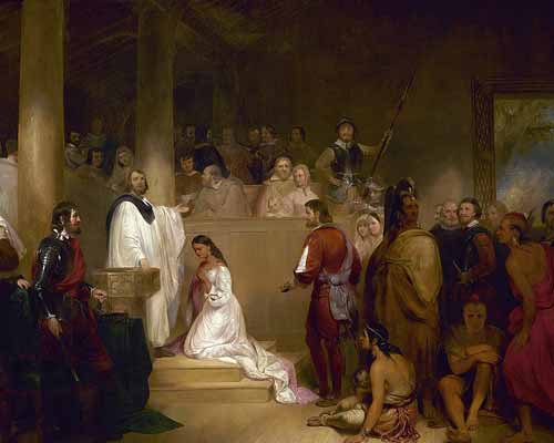 Unfortunately, we received a very mechanical, monotone tour that omitted any mention of the Christian elements we requested. Notably, the guide skipped two striking 12’ x 18’ oil-on-canvas paintings in the Rotunda: Embarkation of the Pilgrims, depicting William Brewster leading a prayer as families depart for the New World, and Baptism of Pocahontas, portraying Pocahontas’s baptism before her marriage to John Rolfe. She described the other six Rotunda paintings in detail but ignored these until we asked her to comment on them.