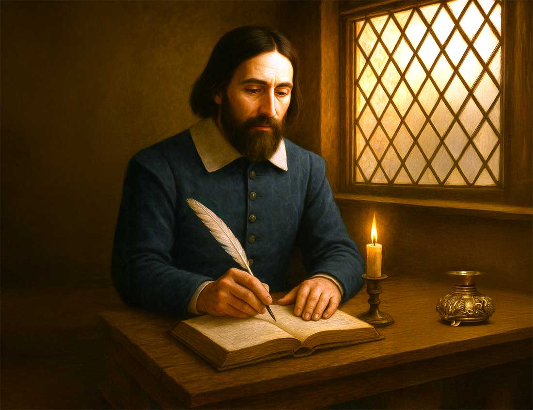 William Bradford (1590-1657), second governor of Plymouth; his journals have been published as Of Plymouth Plantation and remain the most detailed records of early life in Plymouth, as well as the years and events leading to the Pilgrims’ settlement there