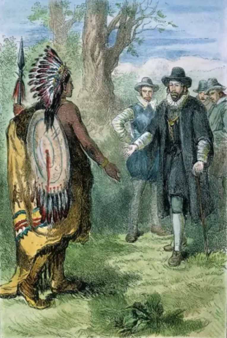 Winthrop meets with a Narragansett warrior, c. 1631–1639