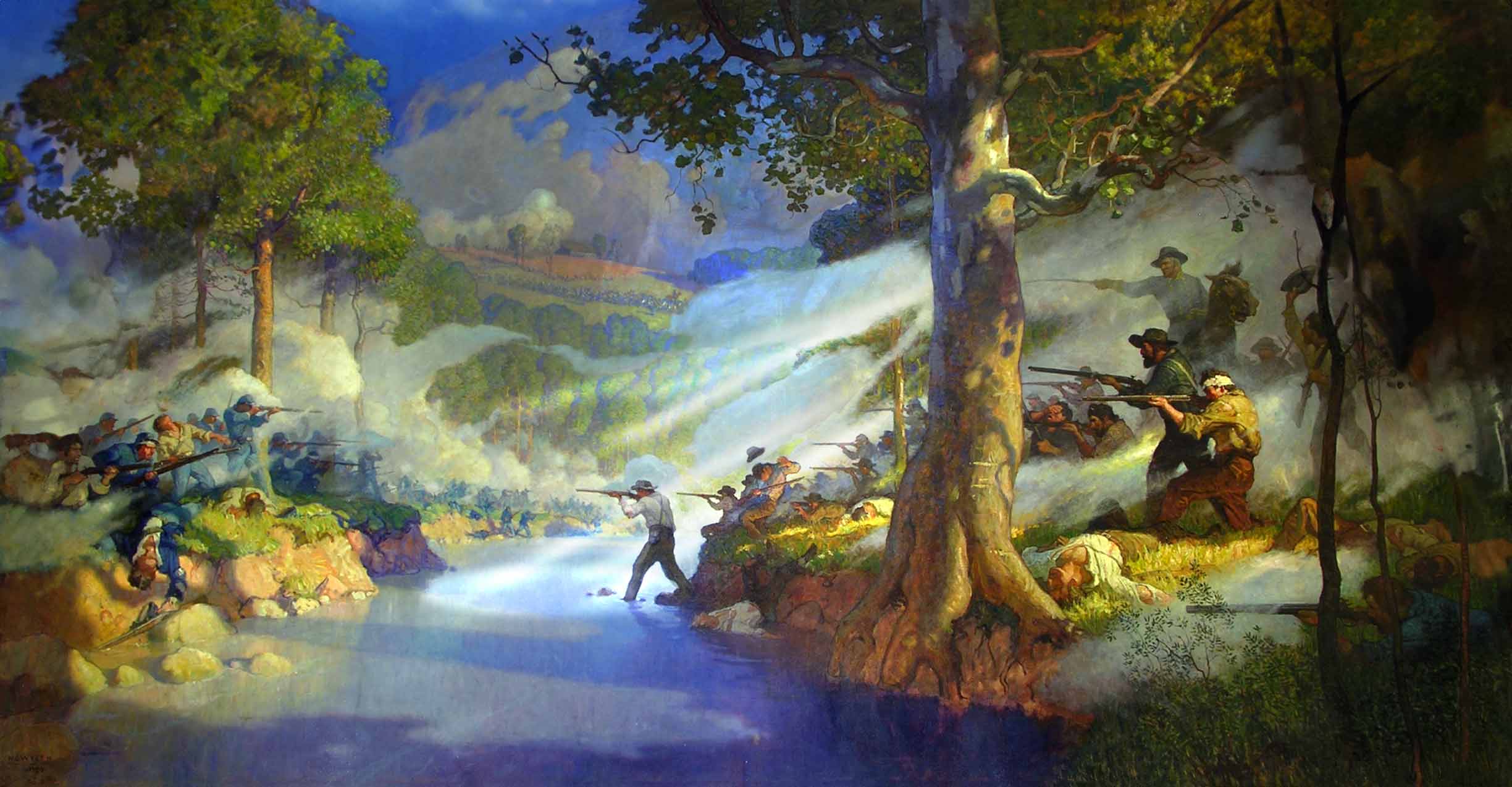 The two forces met in southwest Missouri at Wilson’s Creek, the second major battle of the Civil War, on August 10, 1861. The pro-Southern forces outnumbered the Union more than two to one, but the impetuous and overconfident Lyon determined to attack anyway. A fierce contest ensued in which the two armies—mostly ununiformed and with but rudimentary training—inflicted more than twelve hundred casualties on each other, killing General Lyon in the process. The Union forces retreated and the exultant pro-Southern forces followed them to the capital at Springfield.
