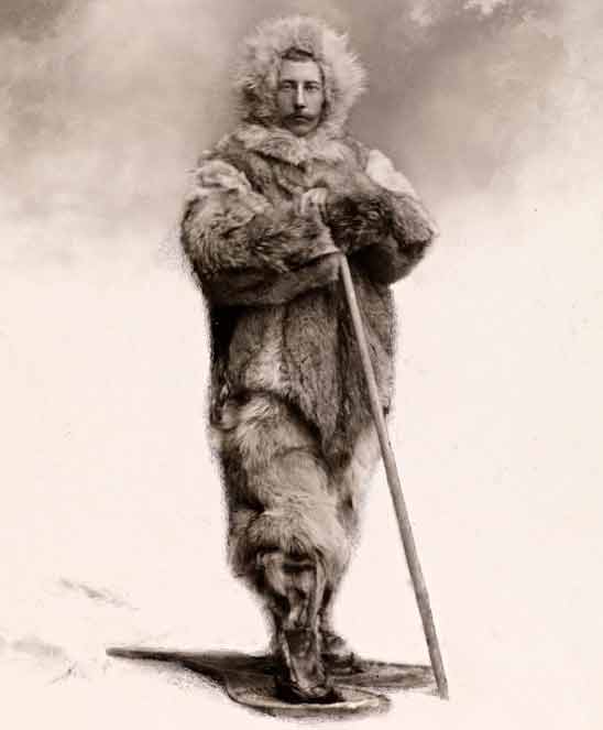 Roald Amundsen modeling the clothing and gear that gave his expedition such great success; “Not an outfit that cut a dash by its appearance, but it was warm and strong”