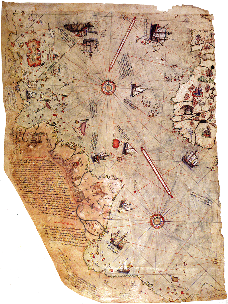 A fragment of the Piri Reis map which dates back to 1513 and which some scholars believe depicts Antarctica