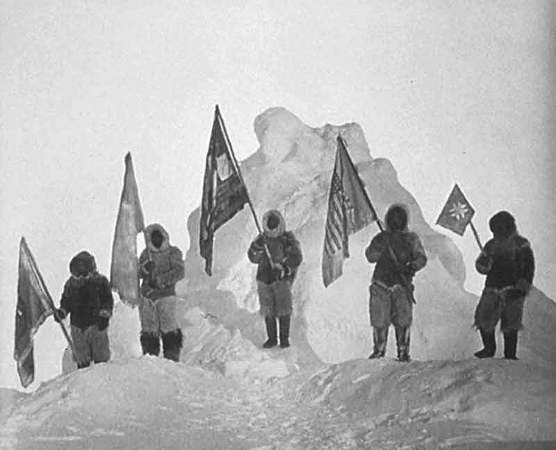 Peary’s team celebrating triumphantly at the North Pole
