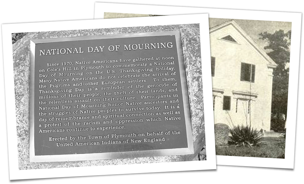 Mashpee Meetinghouse, 1684 and “Day of Mourning” plaque in town square